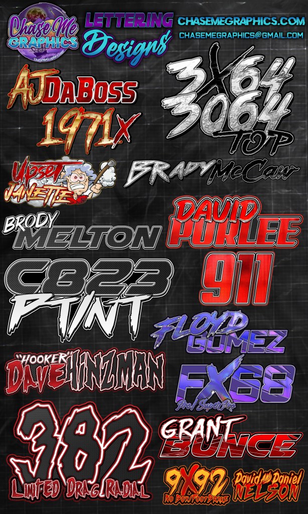 Showcase SHOWCASE Logo Designs Drag Racing Name/Number Sets T-Shirt Designs Event Flyers Event Award Designs